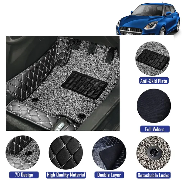HIGH-GRADE LEATHERETTE MATS WITH DETACHABLE CURLY FLOOR LINER- These mats are made of premium leatherette with a tailor stitch design. It also comes with detachable curly mats which protect the leather mats for long life and easy cleaning
