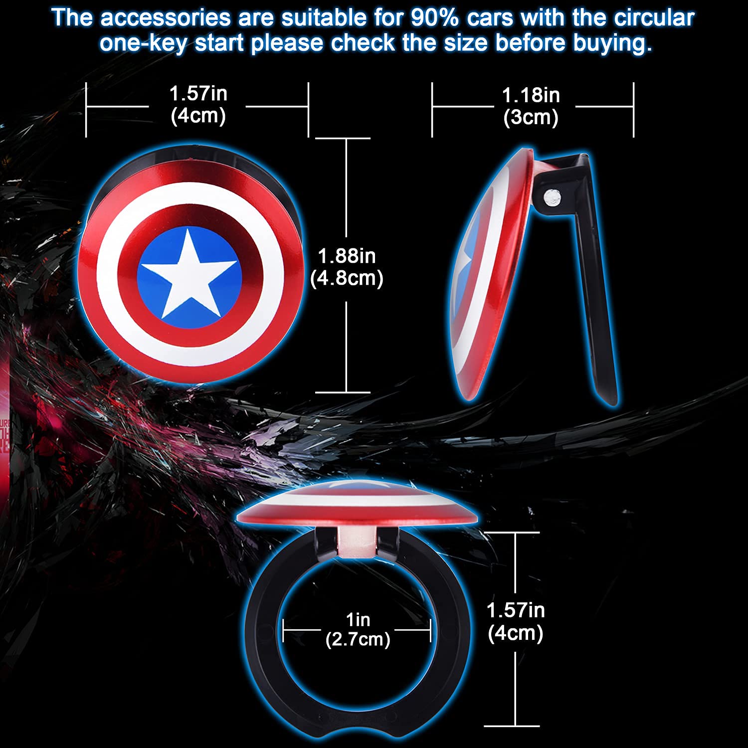 HIGH-QUALITY MATERIAL: Push to start button cover made from high-quality Aluminum Alloy material, will not be deformed, the car start button cover has been polished plating on the entire surface of the metal, Anti-scratch, durable and delicate touch.