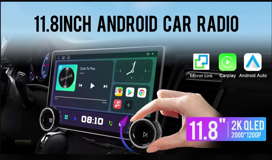 11.8‑inch 2K‑class Android head unit that blends a sharp QLED/AMOLED