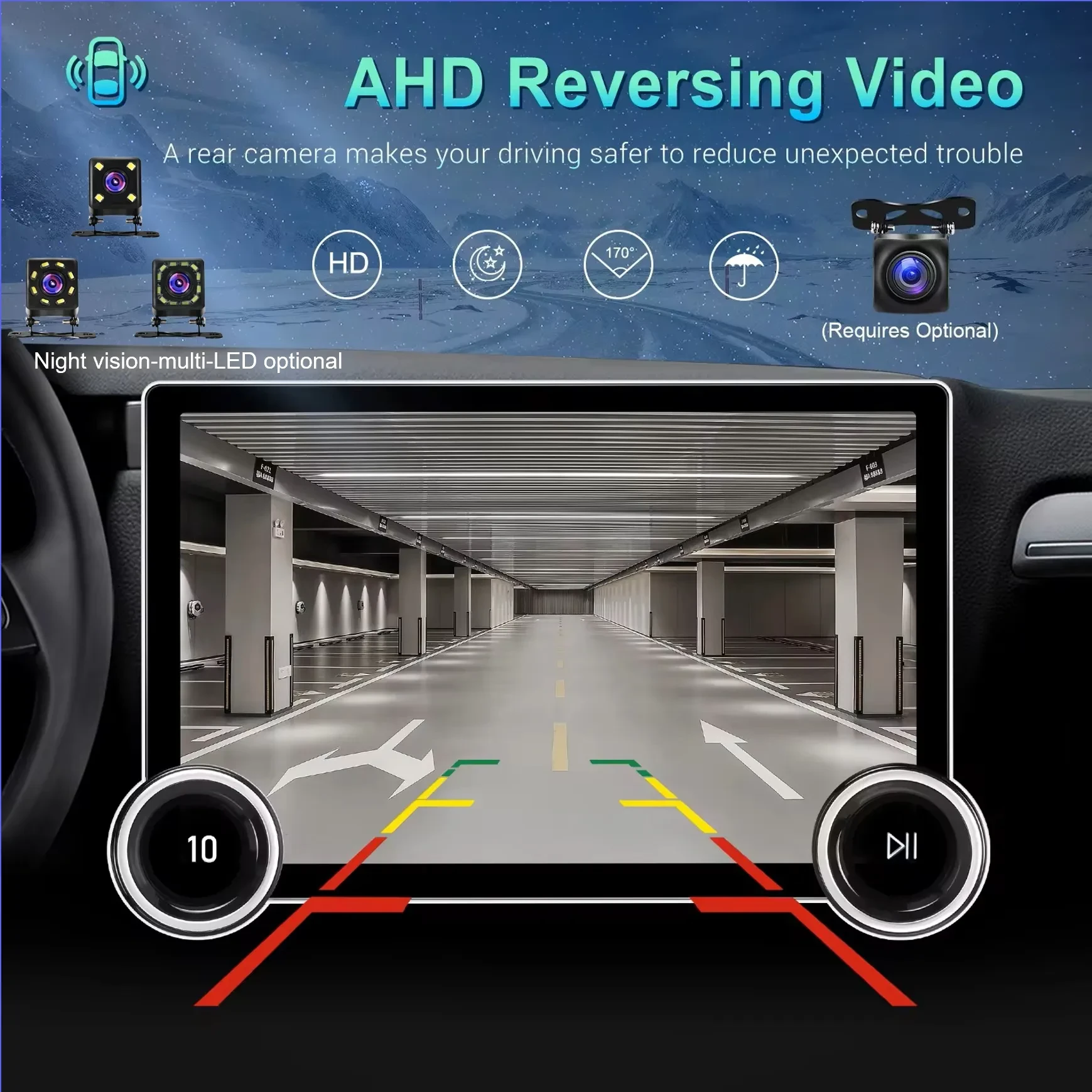Camera support: Rear camera input; many SKUs add AHD/360 surround support.